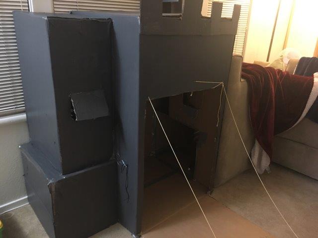 For older kids, set them a creative challenge, such as, to create a castle out of cardboard boxes. Our ‘older kid’ (daddy) and 3 year old had a ball of a time making a castle with a drawbridge.